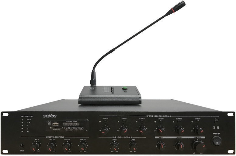 - Đầu ra loa: 100V hoặc 70V, vùng loa ZONE1-ZONE6